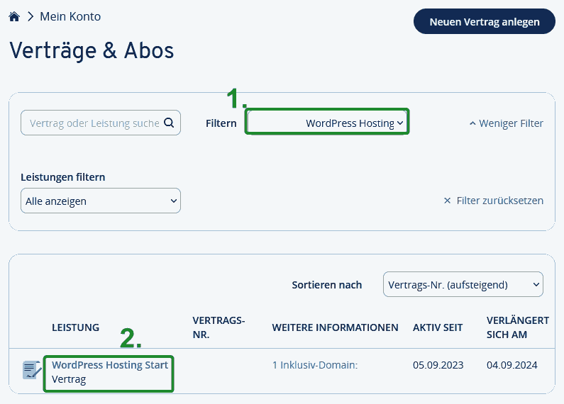 Ionos WordPress Hostig Vertrag einrichten
